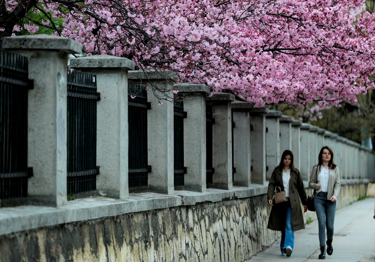 Nakon hladnog jutra i niskih temperatura zraka, građani i posjetioci Sarajeva, glavnog grada Bosne i Hercegovine, uživaju u proljetnom danu.