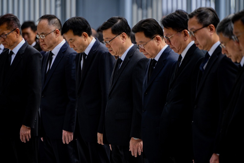 Lider Hong Konga John Lee, drugi zvaničnici i državni službenici, obučeni u crno, stajali su u tišini tri minute u subotu ujutro ispred centralnih vladinih kancelarija, gdje su zastave spuštene na pola koplja.