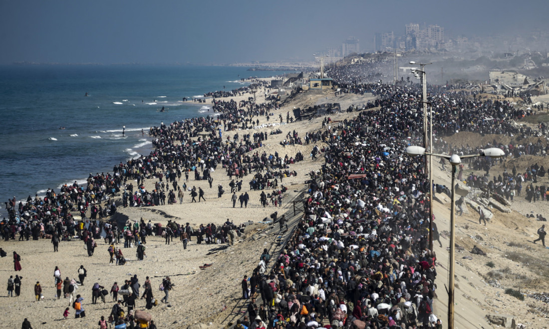 Interno raseljeni Palestinci kreću se iz južne u sjevernu Gazu duž ceste Al Rashid, u središnjem dijelu Pojasa Gaze, 27. januara 2025. Foto: EPA/MOHAMMED SABER