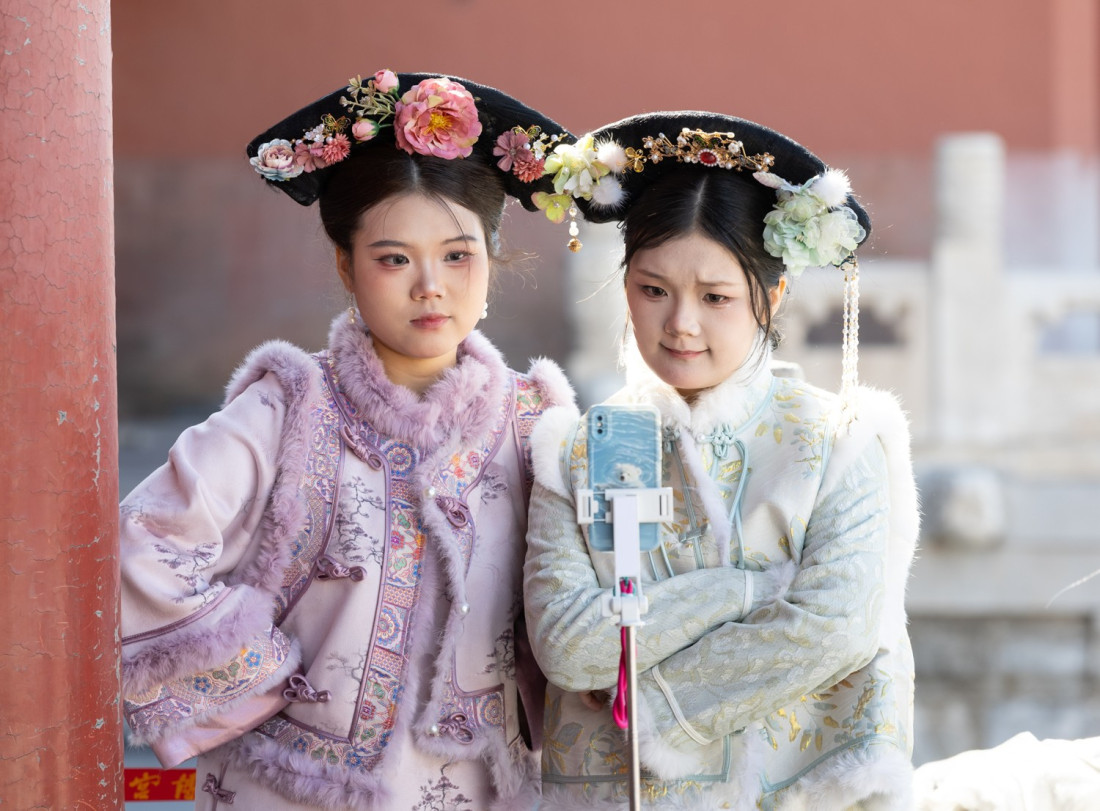 Djevojke obučene u tradicionalni hanfu poziraju za fotografije u Pekingu, Kina, 5. aprila 2025. Foto: EPA/JESSICA LEE