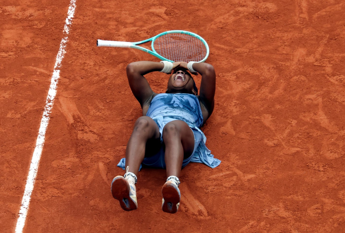 Coco Gauff iz SAD-a slavi pobjedu u finalu ženske konkurencije protiv Bjeloruskinje Aryne Sabalenke na Grand Slam teniskom turniru French Open na Roland Garrosu u Parizu, Francuska, 7. juna 2025. Foto: EPA/TERESA SUAREZ