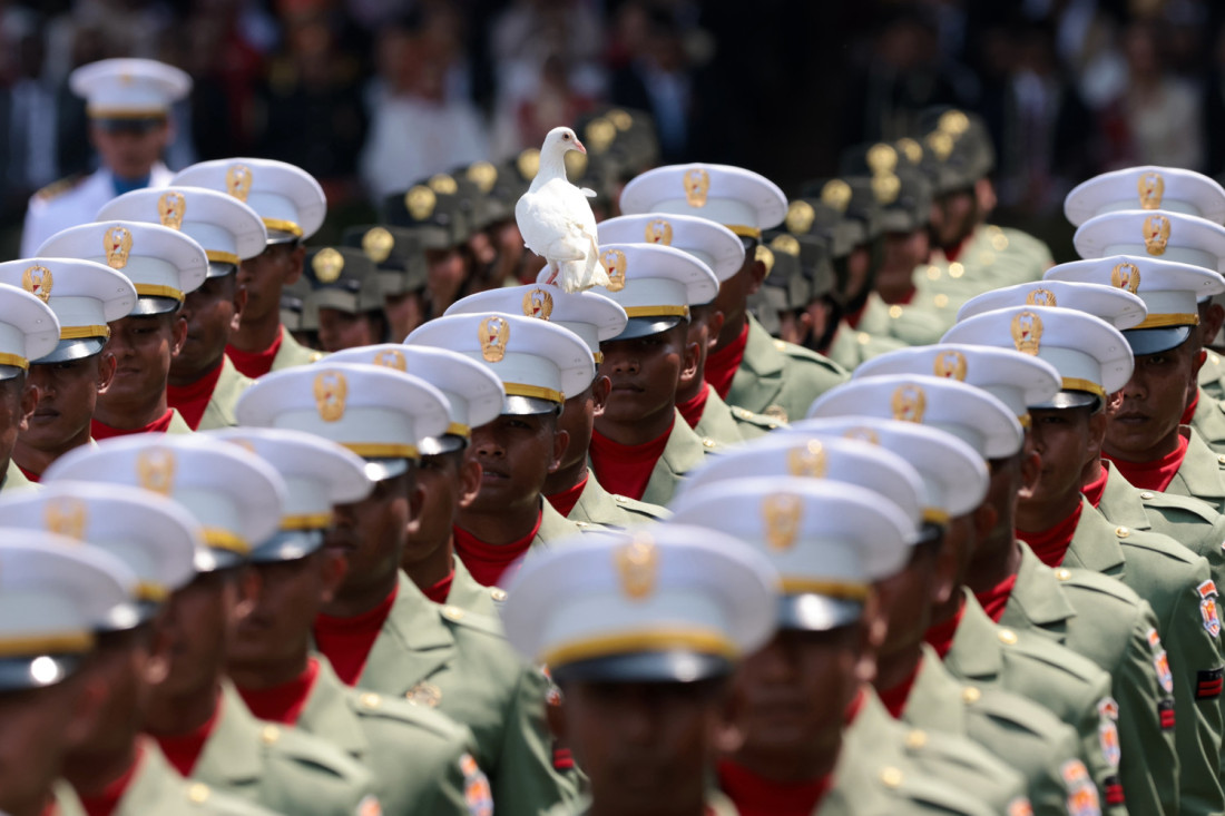 Golub stoji na vrhu kadetske kape tokom ceremonije obilježavanja 80. godišnjice Dana nezavisnosti Indonezije u Predsjedničkoj palati u Džakarti, Indonezija, 17. augusta 2025. Foto: EPA/ADI WEDA