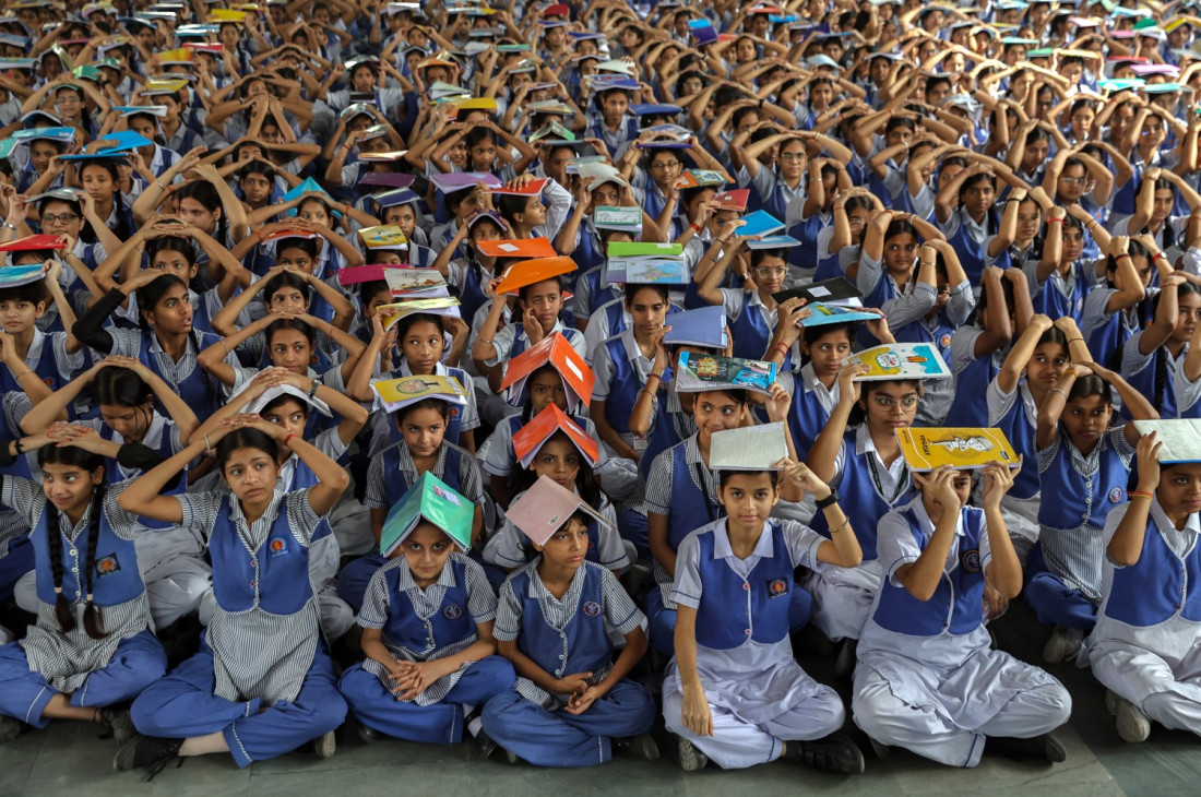 Indijski učenici učestvuju u simuliranoj vježbi u Rajkiya Sarvodaya Vidyalaya u Nju Delhiju, Indija, 7. maja 2025. Foto: EPA/RAJAT GUPTA