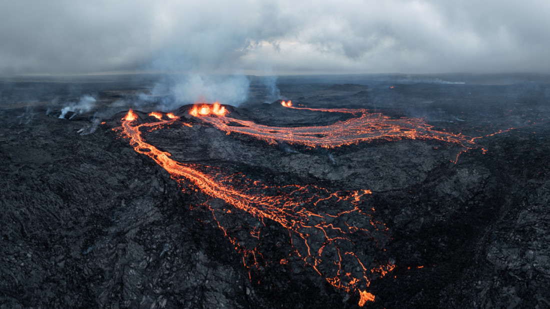 Dim i lava se uzdižu nakon erupcije vulkana u blizini Grindavika, Reykjanes, Island, 18. jula 2025. Foto: EPA/JAKOB VEGERFORS