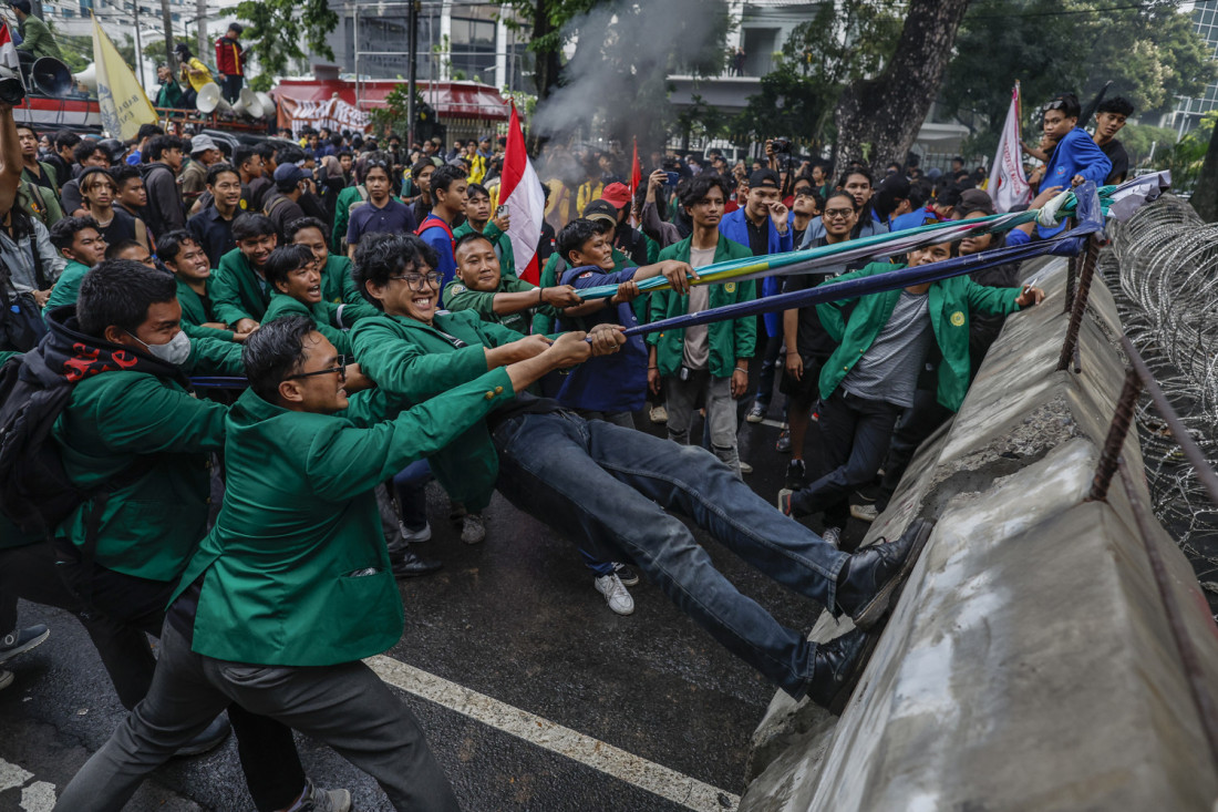 Studenti ruše barijere tokom antivladinog protesta u blizini predsjedničke palate u Džakarti, Indonezija, 17. februara 2025. Foto: EPA/Mast Irham
