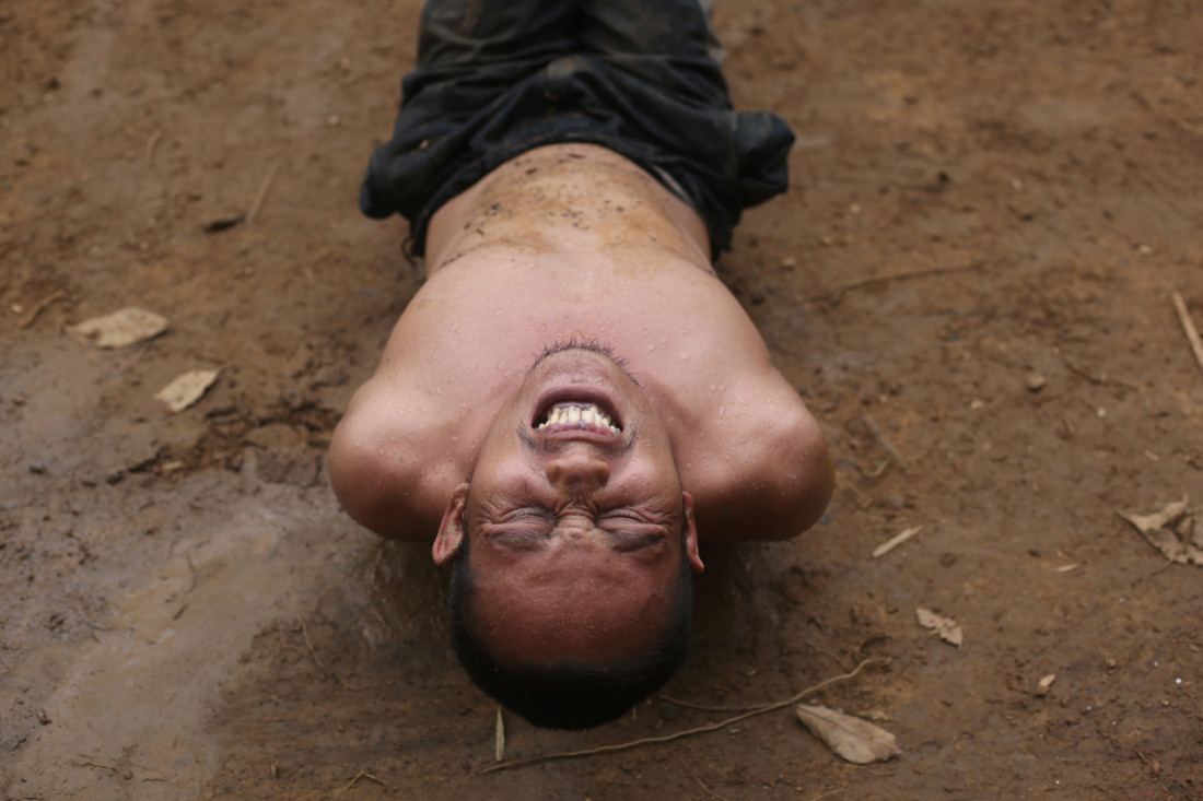 Novi kadet pripadnik Narodnih odbrambenih snaga (PDF) vježba tokom osnovne vojne obuke u tajnom kampu u džungli u državi Mon, Mjanmar, 12. jula 2025. Foto: EPA/KAUNG ZAW HEIN