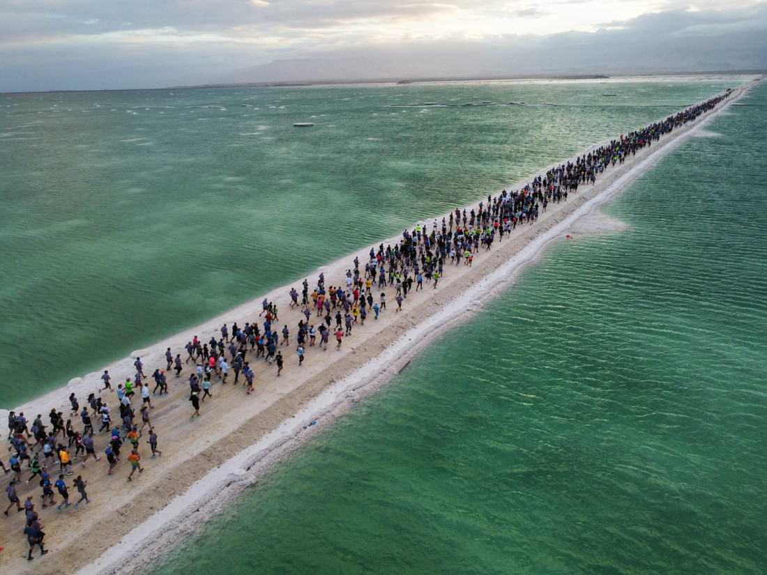 Trkači u akciji na startnoj tački 6. Maratona Mrtvog mora u Ein Bokeku, blizu granice između Izraela i Jordana, Izrael, 7. februar 2025. Foto: EPA/ABIR SULTAN