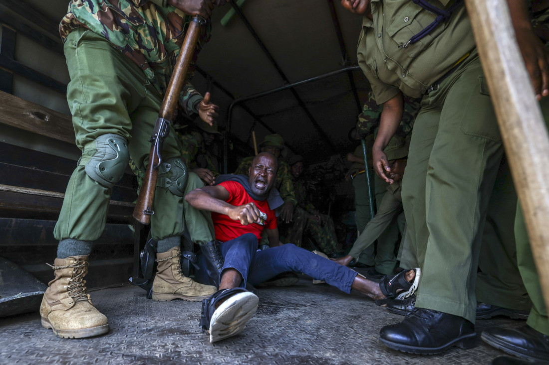 Pripadnici policije za suzbijanje demonstracija privode aktivistu tokom protesta na kojem se traži oslobađanje kritičara vlade koji su navodno oteti u Nairobiju, Kenija, 6. januara 2025. Foto: EPA/DANIEL IRUNGU