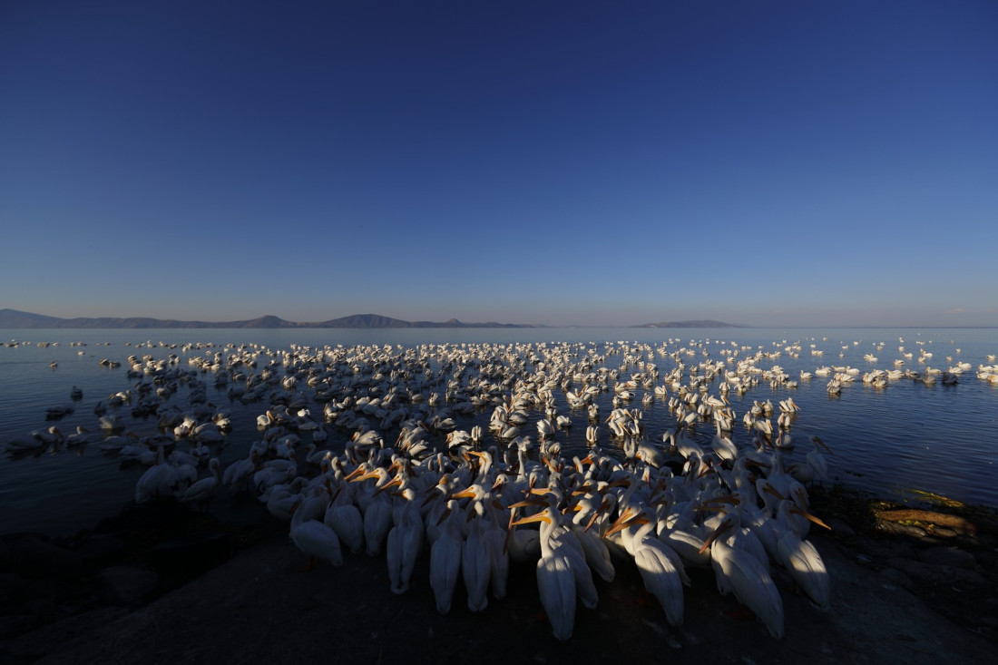 Pelikani (Pelecanus spp.) iz Sjedinjenih Američkih Država i Kanade na ostrvu Petatan, Cojumatlan, Meksiko, 6. februar 2025. Foto: EPA/Francisco Guasco