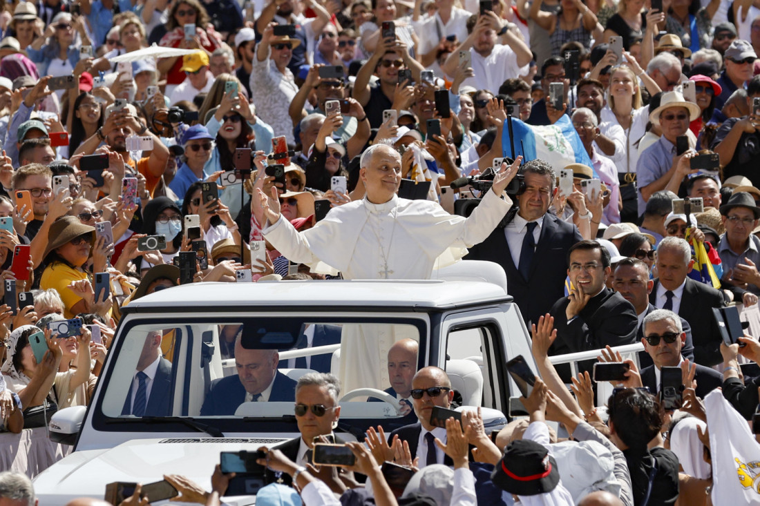 Papa Lav XIV gestikulira iz papamobila dok stiže na svoju sedmičnu opću audijenciju na Trgu Svetog Petra u Vatikanu, 4. juna 2025. Foto: EPA/FABIO FRUSTACI
