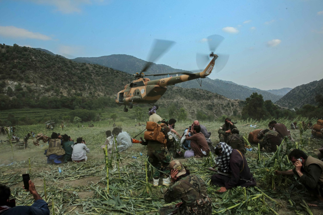 Talibanski vojni helikopter prevozi povrijeđene žrtve nakon potresa u Kunaru, Afganistan, 1. septembra 2025. Foto: EPA/SAMIULLAH POPAL