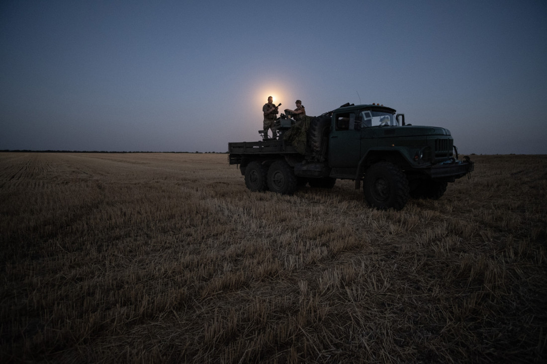 Dva vojnika iz protivavionske artiljerijske brigade ukrajinske vojske skeniraju svoj sektor u potrazi za dronovima Shahed na južnoj liniji fronta u noći kada je Rusija pokrenula najveći kombinovani zračni napad od početka svoje potpune invazije na Ukrajinu, 8. jula 2025. Foto: EPA/Maria Senovilla