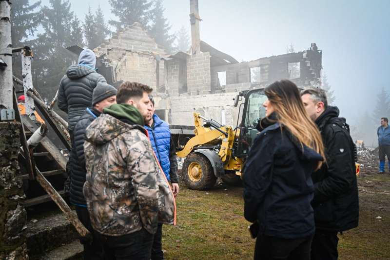 Načelnik je prisustvovao akciji čišćenja preostalih materijala i ruševina zajedno s članovima i rukovodstvom Planinarskog društva Bukovik, te razgovarao o narednim koracima u procesu obnove.