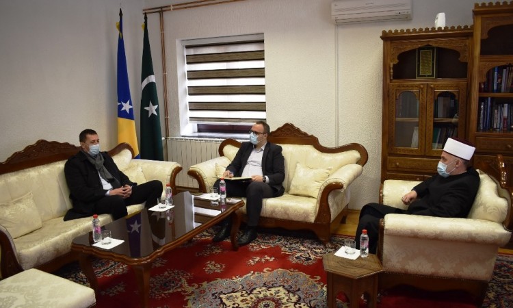 Muftija Kudić i zamjenik direktora Buzar su razgovarali o aktuelnim dešavanjima kada je u pitanju migrantska kriza i organizacija vjerskog života za migrantsku populaciju, te o drugim tekućim pitanjima iz djelokruga aktivnosti ustanova koje predstavljaju.