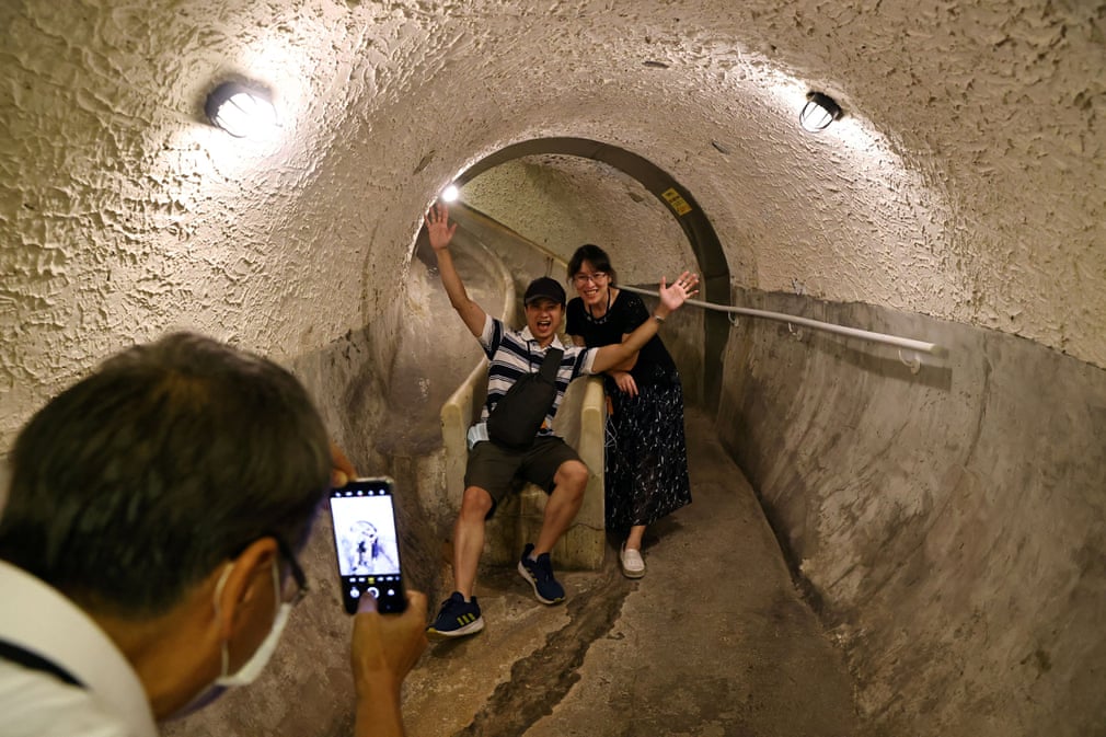 Turisti poziraju za fotografije u podzemnom tunelu ispod hotela Grand.