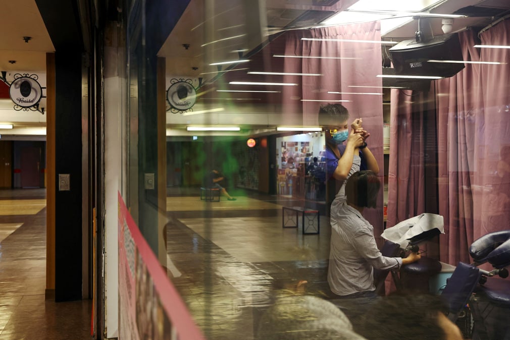 Mušterija se šiša u brijačnici u podzemnom trgovačkom centru između dviju stanica metroa, koji će se koristiti kao sklonište od zračne opasnosti u slučaju napada.