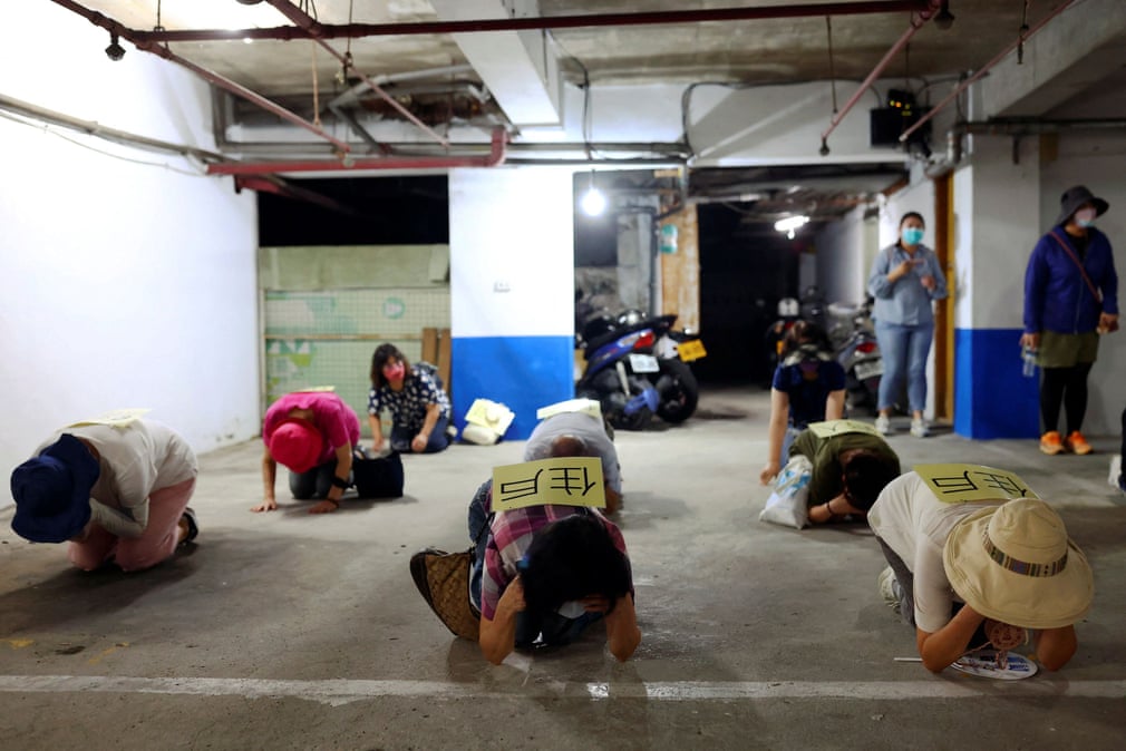 Vojni policajac vodi ljude do podzemnog prostora koji će se koristiti kao sklonište od zračnih napada u slučaju napada, tijekom vježbe u Taipeiju. Tajvan je obećao da će se braniti i jačanje svoje obrane postavio kao prioritet, uz redovite vojne i civilne obrambene vježbe.