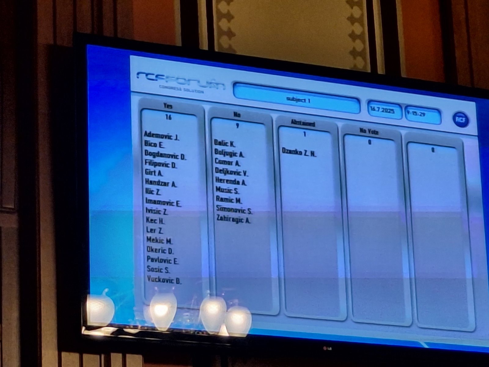 Na prijedlog Naše stranke, za predsjedavajućeg Gradskog vijeća izabran je Alen Girt (Naša stranka), s 16 glasova za, 9 protiv i jednim suzdržanim.