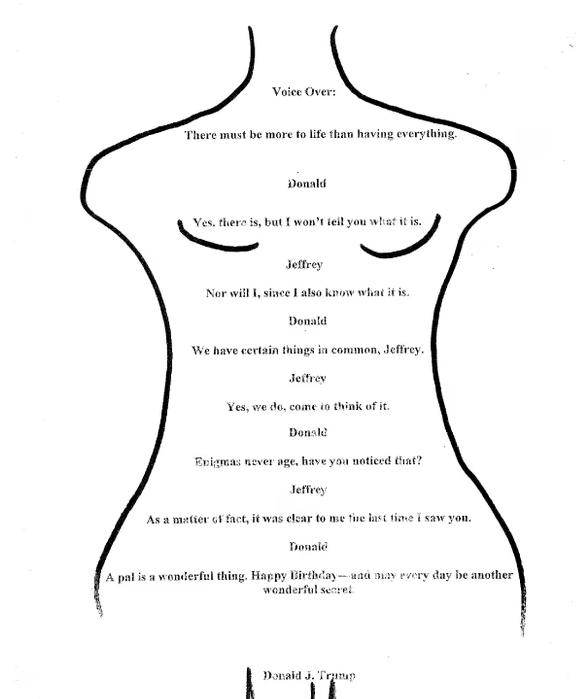 Američke demokrate objavile su dokument koji bi mogao dodatno uzdrmati Donalda Trumpa. Radi se o seksualno sugestivnom pismu i crtežu, za koje se tvrdi da nose Trumpov potpis, a koje je pronađeno u tzv. “rođendanskoj knjizi” milijardera i osuđenog seksualnog prestupnika Jeffreyja Epsteina.