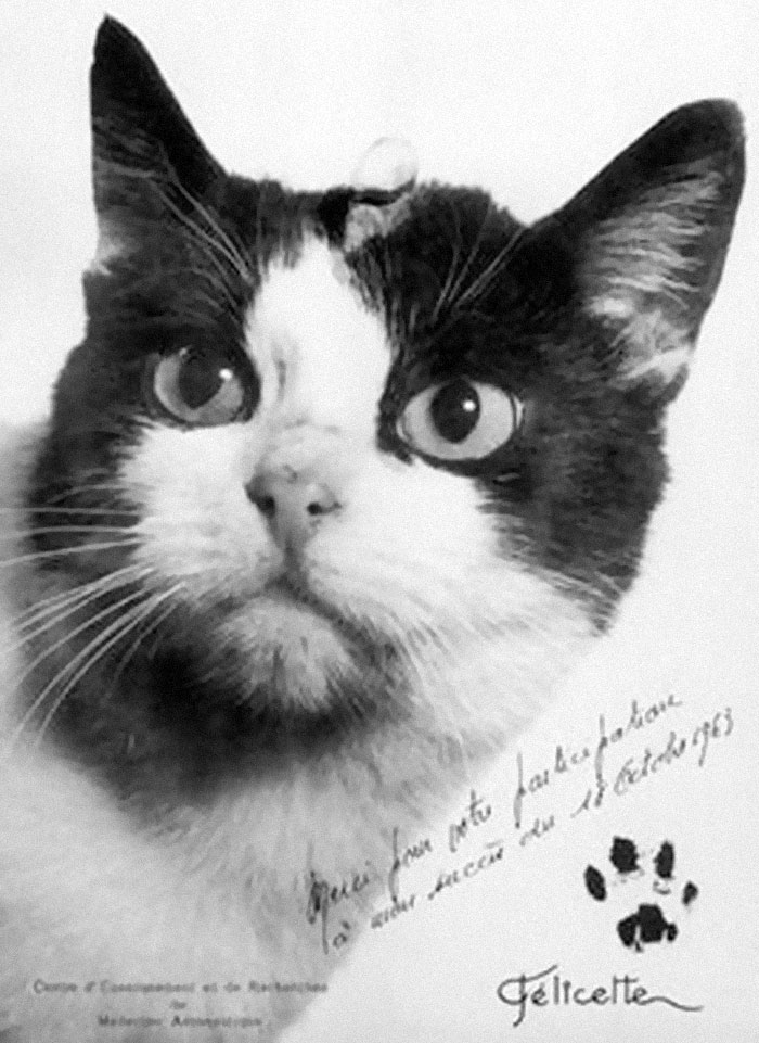18. oktobra 1963. francuski znanstvenici u svemir lansirali su raketu u kojoj se nalazila mačka po imenu Felicette. Orbitirala je blizu 100 milja iznad zemlje, a zatim se sigurno spustila na zemlju posebnim padobranom. Felicette ima visoku čast što je do sada jedina mačka lansirana u svemir.