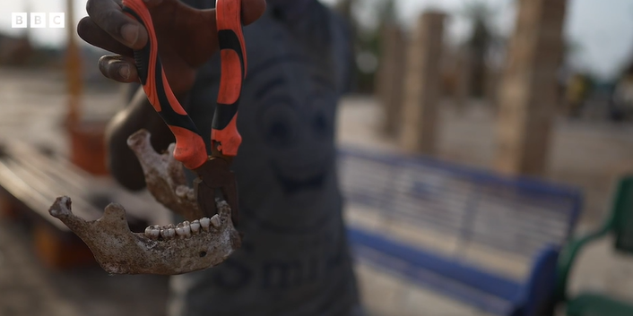 Dok priča, podiže s tla kost. „Ovo je ljudska noga“, kaže mirno. „Kao moja.“ Do sada je, kaže, pronašao ostatke 15 tijela. „Navikao sam se. Više se ni ne bojim. Samo me tuga izjeda.“
