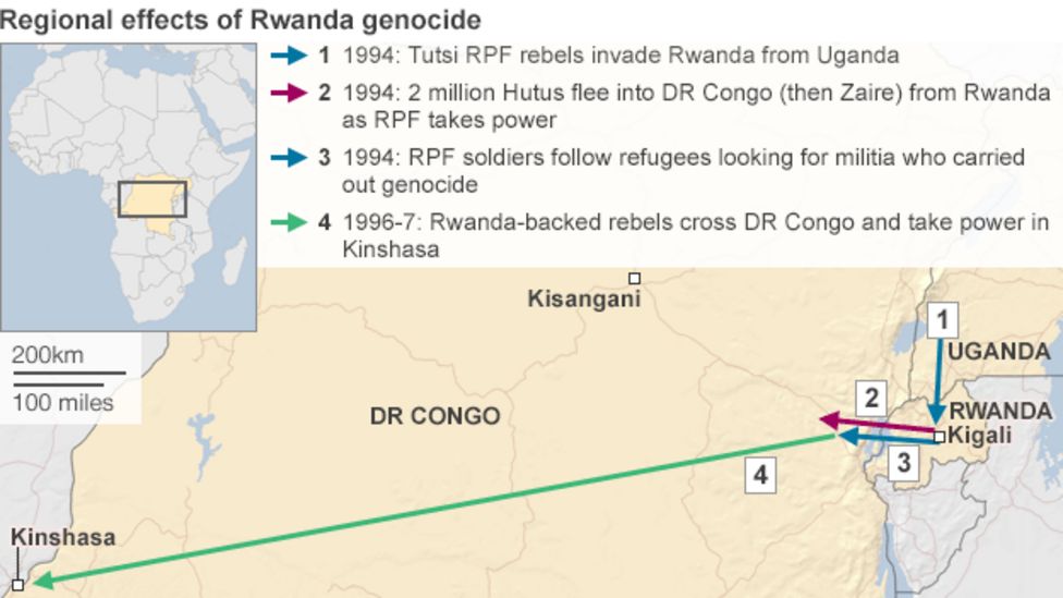 Pobunjeničke grupe koje podržava Ruanda na kraju su marširale na glavni grad DR Konga, Kinšasu, i zbacile vladu Mobutu Sese Sekoa, postavljajući Laurena Kabilu za predsjednika.
