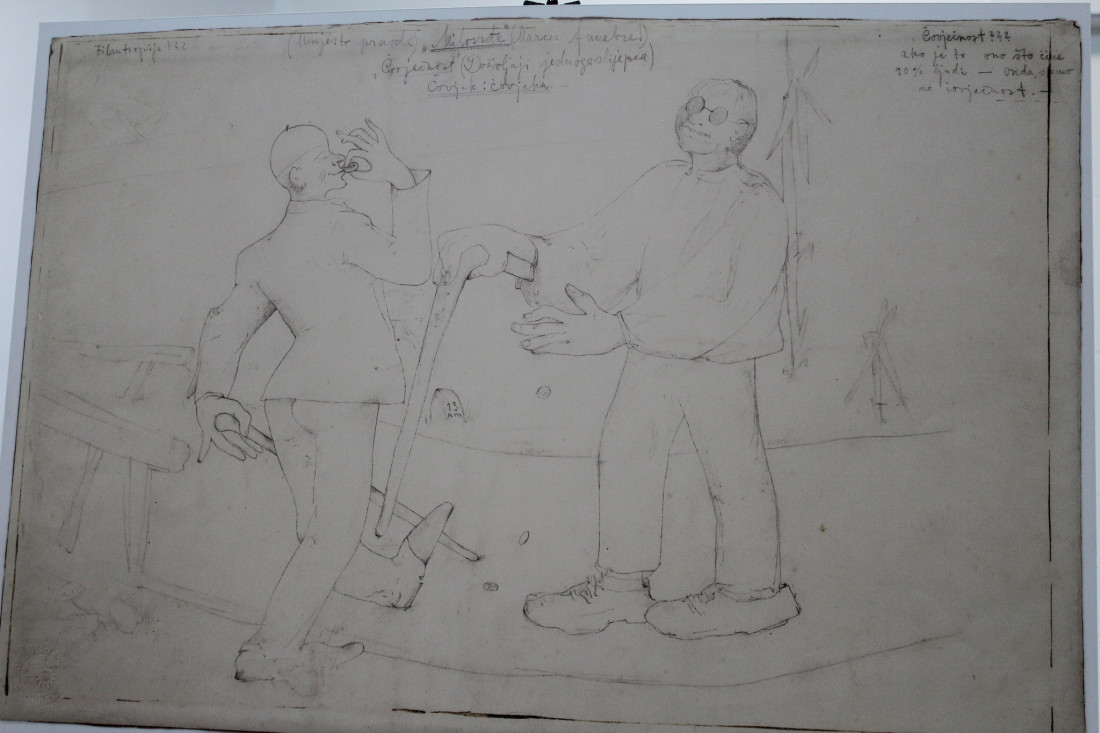 Tom prilikom je predstavljeni ciklus crteža Mice Todorović koji kritikuje tadašnje moderno društvo i njegove karakterne osobine. Kroz Micin jedinstven karikaturalni i satirični likovni izraz na crtežima je prikazana ljudska pohlepa proždrljivost, taština...Sve je to aktuelno i u naše vrijeme o čemu su diksutirali i učesnici radionice.