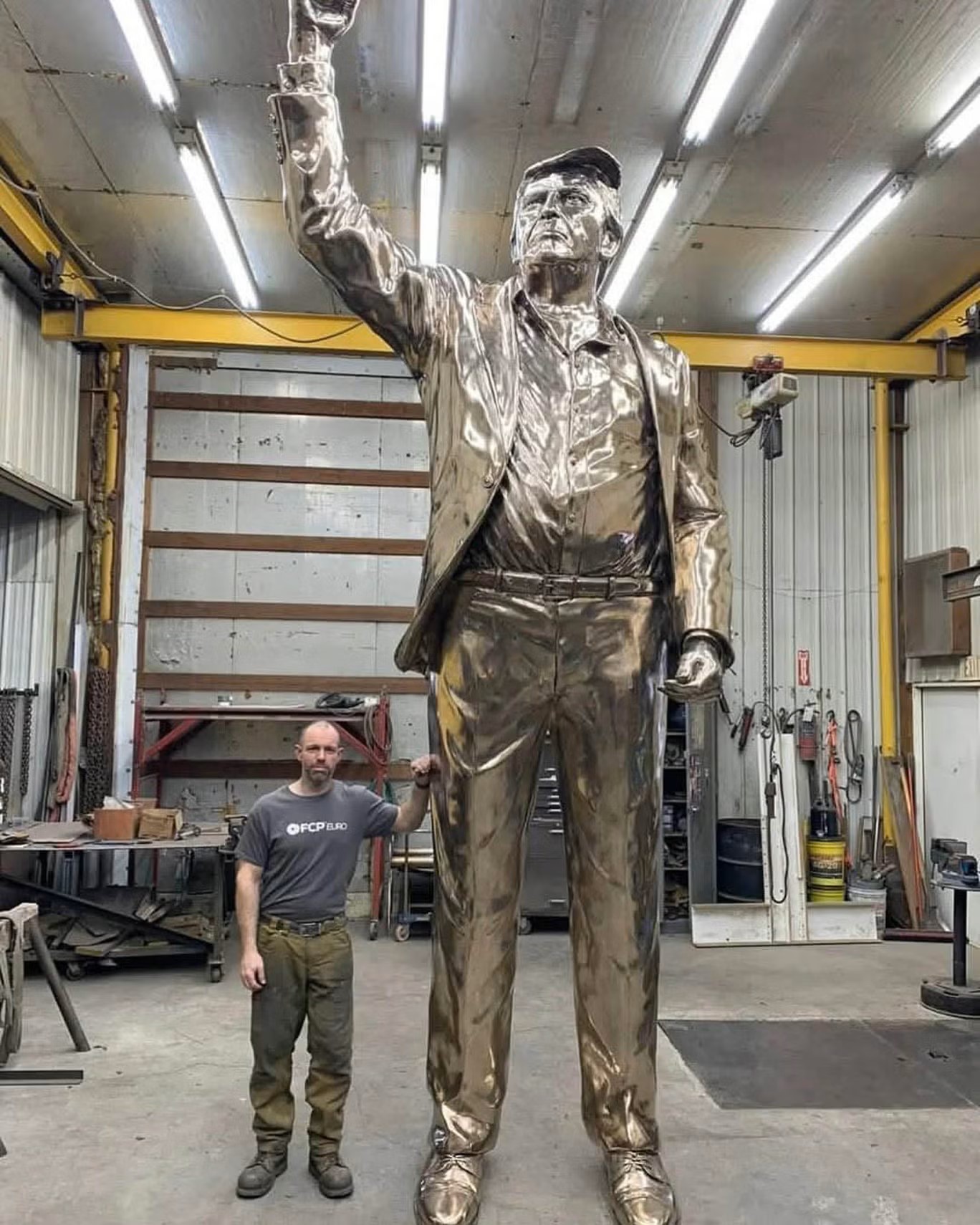 Prema New York Timesu, za statuu je izgrađen postament od čelika i betona, dok je sam kip u izradi kod Alana Cottrilla, umjetnika iz Ohia. Cottrill je ranije izrađivao statue bivših predsjednika i ima radove izložene u umjetničkoj kolekciji Kongresa SAD-a.