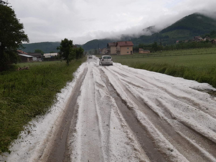 Kao što se može vidjeti sa fotografija i videa čitalaca, u Gornjem Vakufu/Uskoplju je padao jak grad koji je zabijelio ulice. Nekoliko automobila ostalo je zaglavljeno na cesti.