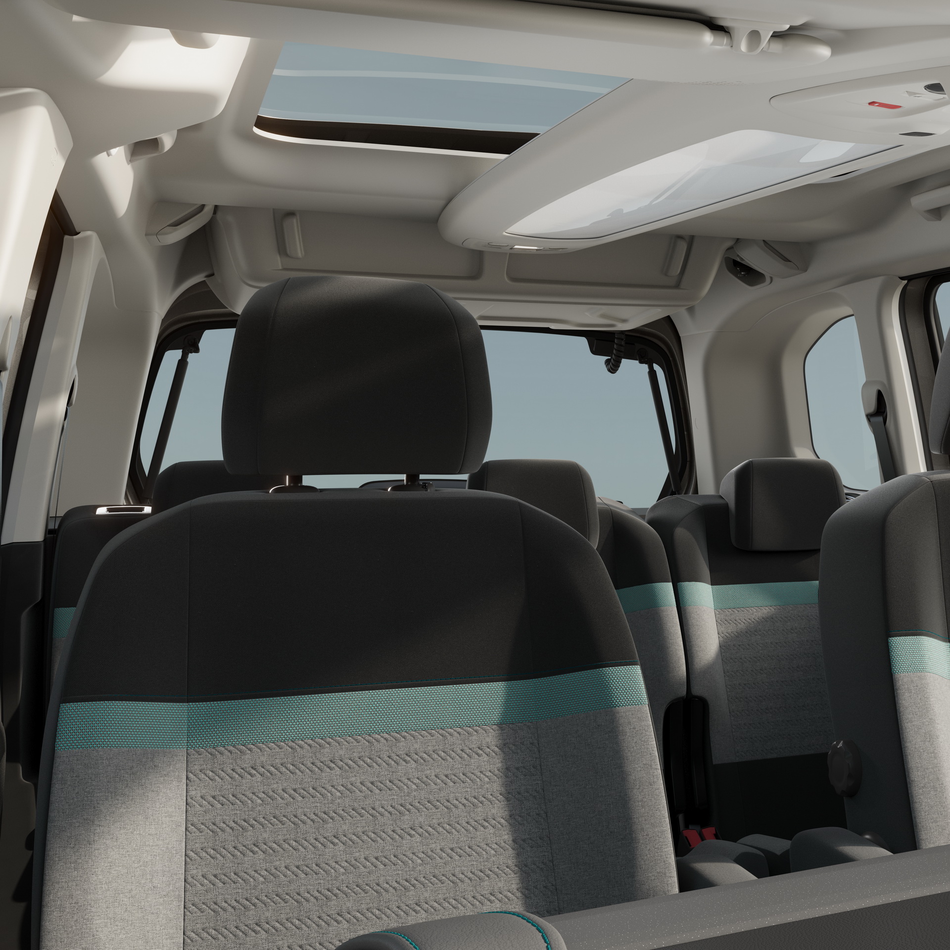 Budući da ga je moguće prilagođavati poput nekog sklopivog komada namještaja, ë-Berlingo se može transformirati kako god vam odgovara i omogućuje vrlo svestranu uporabu u svakodnevnom životu: prijevoz od 5 do 7 osoba ovisno o izvedbi ili pak maksimalno iskorištavanje prostora kako bi se u njemu mogli prevoziti teški i glomazni predmeti.