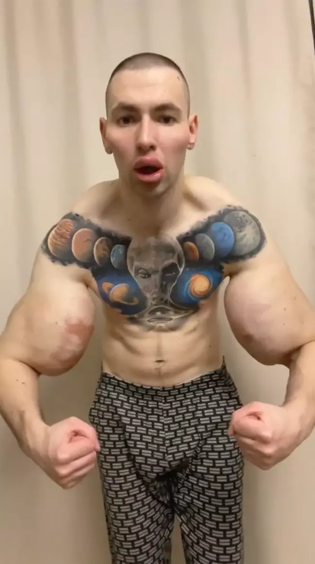 Nazvan 'Ruski Popaj' poznat je po svojim ogromnim umjetnim bicepsima ignorirao je liječnička ozbiljna upozorenja te je podvrgnut operaciji kako bi više izgledao kao 'vanzemaljac'.
