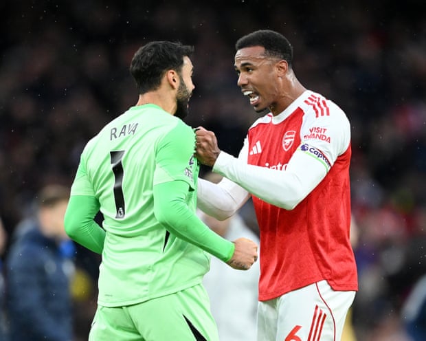 David Raya i Gabriel Magalhães čestitaju jedan drugom, nakon što je Arsenal sačuvao mrežu netaknutom. Foto: Clive Mason/Getty Images