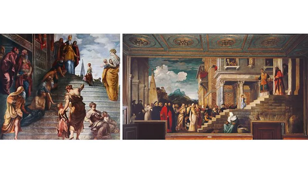 Zaklevši se da će Veneciji pokazati drugačiji put, Tintoretto je naposljetku – 20 godina nakon što se Titian pozabavio istom temom – stvorio vlastitu verziju Predstavljanja Djevice. Dok je Titianov prikaz pažljiv i odmjeren, sa postepenim usponom kamenih stepenica koje vode oko slike s lijeva na desno, Tintorettova vizija je dinamična i uzletna, odvodeći naš pogled uz blistave stepenice. Da li je bivši učenik nadmašio učitelja? Jedan je majstorski metodičan. Drugi odražava čudesno.