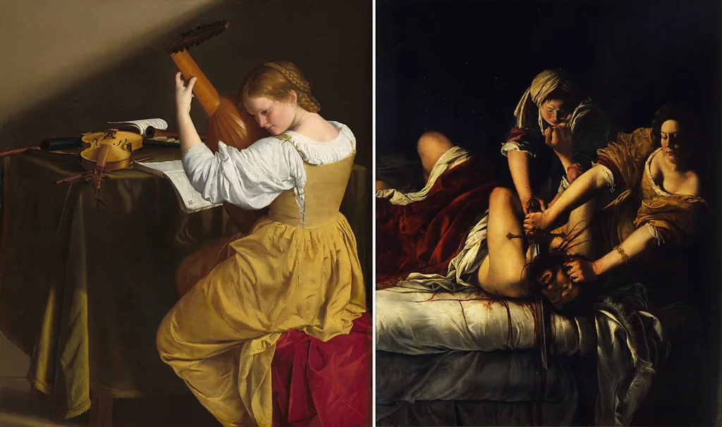 Par slika – Orazijev Svirač lutnje iz 1610, započet u godini suđenja, i Artemisijina Judita ubija Holoferna iz 1612, za koju se smatra da je nastala ubrzo nakon suđenja – ukazuje na tu promjenu. Dok obje slike pokazuju zajedničku sklonost ka karavađističkom chiaroscuru, u Artemisijinoj sirovoj viziji prisutna je neustrašiva žestina koja djeluje kao da je tek oslobođena.