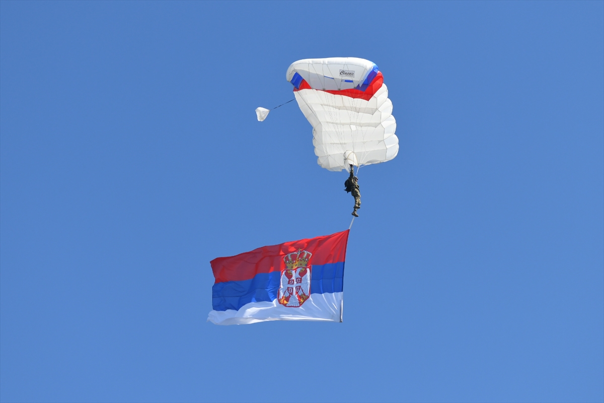 Parada je završena skokom padobranaca iz helikoptera H-145, s visine između 1.500 i 2.000 metara, pri čemu su nosili zastave Republike Srbije i Vojske Srbije.